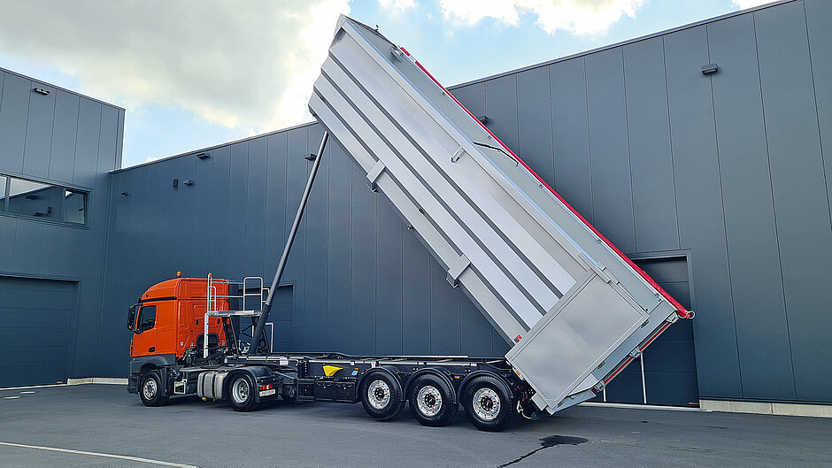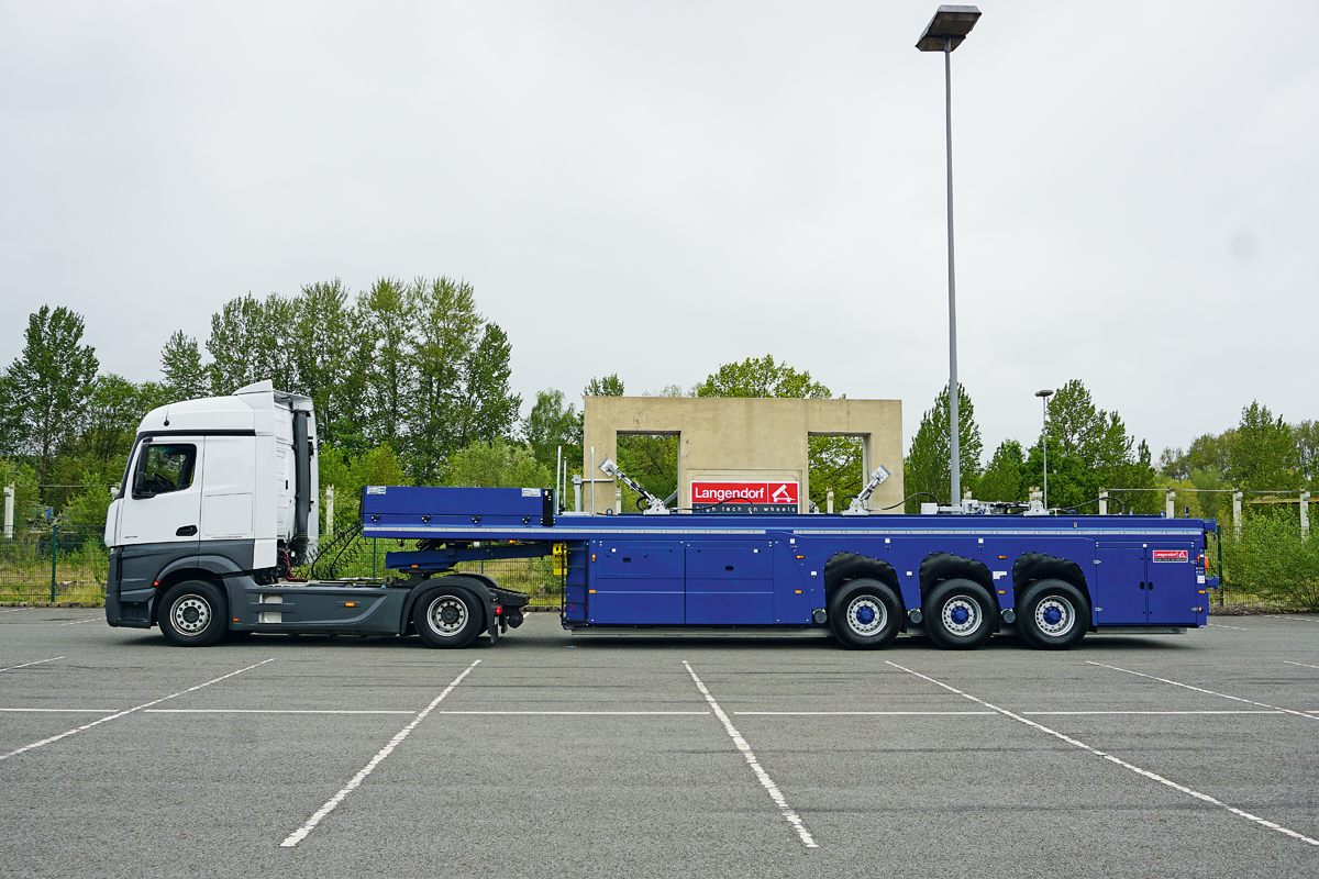 Langendorf wäre nicht Langendorf, wenn die Waltroper keinen Sattelkipper ausstellen würden. Die Großraum-Recycling-Mulde oder auch Schrottmulde verfügt über ein Volumen von ca. 54 m³ bei einer Ladehöhe von 2 400 mm. Auch verfügt das Fahrzeug über eine Doppelflügeltür mit pneumatischer Verriegelung.