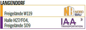Im Freigelände wird ein Betoninnenlader vom Typ SB-15 gezeigt. Für den Einsatz hinter zwei- oder dreiachsigen Zugmaschinen vorgesehen, verfügt der Innenlader über eine Nutzlast von mehr als 24 300 kg. Dank der aufwendigen Einzelradaufhängung hat der Schacht eine Länge von 9 500 mm und eine Breite von 1 550 mm. Daraus ergibt sich die Möglichkeit, Ladungen mit einer Länge von mehr als 9 m und bis zu einer Höhe von 3 700 mm zu befördern. Ladungen in dieser Größe werden sonst mit Tiefladern befördert, wobei aufgrund der Ladungshöhe bzw. -breite eine Ausnahmegenehmigung erforderlich ist. Für den Flatliner ist dies nicht zwingend erforderlich und gibt dem Transportunternehmer somit ein Höchstmaß an Flexibilität.