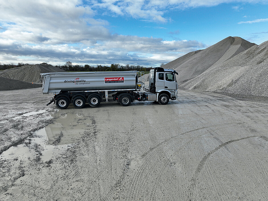 Mit rund 5,7 t ist der neue Langendorf Dreiachs-Sattelauflieger SKS-HS 24 – 7 500 mm ein echtes Leichtgewicht. Der für den Transport von Schüttgütern konzipierte Kipp-Sattelauflieger ist auf ein zulässiges Gesamtgewicht von 39 t ausgelegt und bietet bis zu 24,3 m3 Ladevolumen.