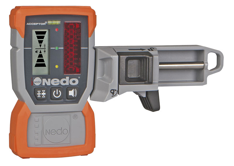 www.youtube.com/watch großes Empfangsfeld, mehrstufige LCD- und farbige LED-Höhenanzeige sowie ein akustischer Signalgeber helfen bei der korrekten Ausrichtung des Lasers und beschleunigen so den Baufortschritt. Zusätzlich kann die Halterung des Acceptor 2 durch ihre ebene Rückseite und die im Gerät integrierte Libelle auch direkt als Anreißkante verwendet werden.