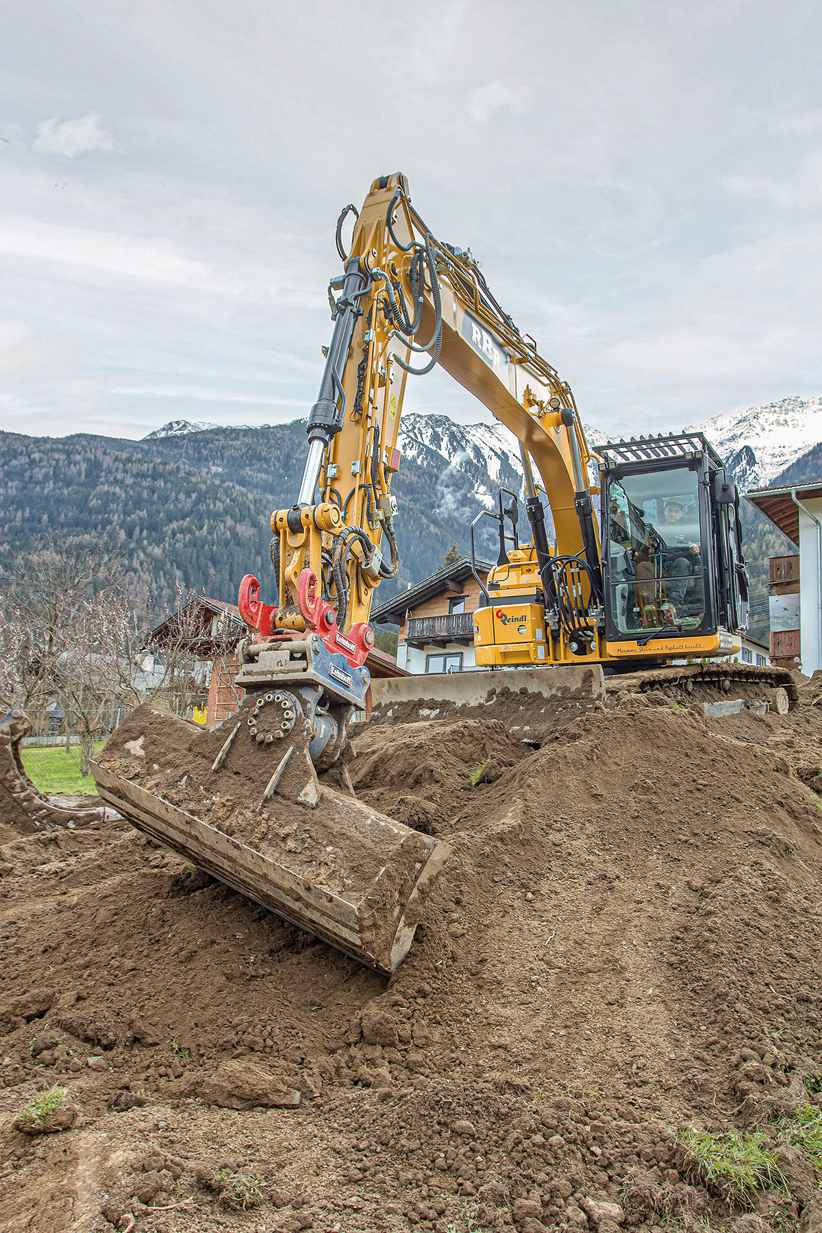 Gerade bei komplexen Aufgaben mit unterschiedlichen Anforderungen, wie etwa beim Kanalbau mit anschließender Verfüllung, kann die Produktivität durch den Einsatz der passenden Anbaugeräte enorm gesteigert werden. »Früher lohnte es sich nicht, etwa für kleine Verdichtungsarbeiten den Anbauverdichter mitzunehmen. Der Anbau an den Bagger hätte viel zu lange gedauert, das hätte sich nicht gerechnet«, bestätigt Reindl. »Nun müssen wir nicht lange überlegen und können alle benötigten Anbaugeräte einsetzen. Schließlich kann der Fahrer jederzeit kurzerhand aus der Kabine heraus wechseln.«