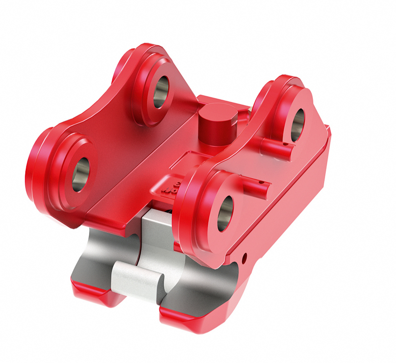 Die Sicherheitslösung mit Doppelverriegelung durch eine zusätzliche Sicherheitsklaue gibt es für die hydraulischen Lehnhoff-Schnellwechsler der Größen HS01 bis HS25 (Gewichtsklassen 0,5 t bis 38 t) und die vollhydraulischen Pendants VL80 bis VL250. Die Verriegelung erfolgt dabei in zwei Schritten. Zum Ersten wie bisher mit zwei Riegelbolzen in der Riegelplatte, bei der zweiten Verriegelung verhindert eine Sicherheitsklaue im Falle einer Fehlverriegelung das unbeabsichtigte Herabfallen von Anbaugeräten. Funktionell umschließt die Sicherheitsklaue durch Federkraft formschlüssig die Aufnahmewelle. Die Verriegelung wird mechanisch durch die Bewegung der Riegelbolzen bewirkt. Beim Entriegeln drückt ein an den Riegelbolzenfahrweg gekoppelter Bolzen die Sicherheitsklaue auf, die erst daraufhin das Anbaugerät freigibt.