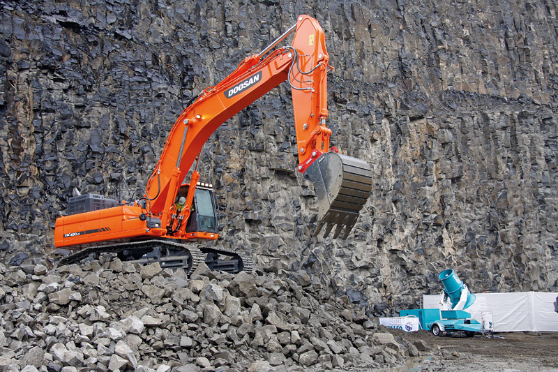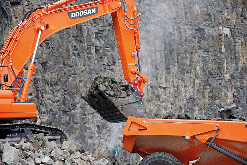 Das Standardanbauwerkzeug an Baggern ist weltweit der klassische Tieflöffel – er ist in den verschiedensten Größen einsetzbar für die meisten Arbeiten mit dem Bagger und dementsprechend auch stark belastet. Für besonders harte Einsätze hat Lehnhoff Hartstahl als einer der führenden Hersteller von Baggerlöffeln und Schnellwechselsystemen die Reihe seiner Heavy-Duty-Hochleistungstieflöffel für Bagger von 18 t bis 130 t im Sortiment. Für höchste Beanspruchung in den oberen Tonnageklassen ab 50 t bietet Lehnhoff die Severe-Heavy-Duty-Tieflöffel an. Kombiniert mit einem hydraulischen Schnellwechsler HS40 und angebaut an einem DX490LC von Doosan will der Heavy-Duty-Tieflöffel HTL40 mit Produktivität und Widerstandsfähigkeit selbst bei härtestem Gestein aufwarten.