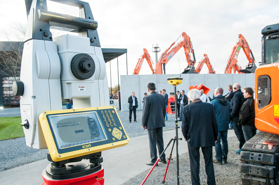 Leica ist bei Bedarf mit eigenen Fachleuten präsent, die die Testwilligen in die Technik einweisen und Hilfestellung leisten. »Wir beschäftigen seit der Eröffnung ein eigenes Team, das sich um die Besucher im Coreum kümmert«, so Segment-Manager Jan Hakert, der selbst einen großen Teil seiner Arbeitszeit vor Ort zubringt. Dort stehe er sowie seine Firmenkollegen für die Fragen wissbegieriger Coreum-Besucher bereit. Schildere ein Kunde ein konkretes Problem aus seinem Arbeitsalltag, könnten die Leica-Experten sowohl die Lösung benennen, als auch direkt vorführen und gegebenenfalls sogar zum Testen anbieten. Im »Coreum« kann Leica nicht nur auf die eigene Angebotspalette zurückgreifen, auch Bagger und Radlader in sämtlichen praxisrelevanten Größenklassen sind direkt verfügbar.