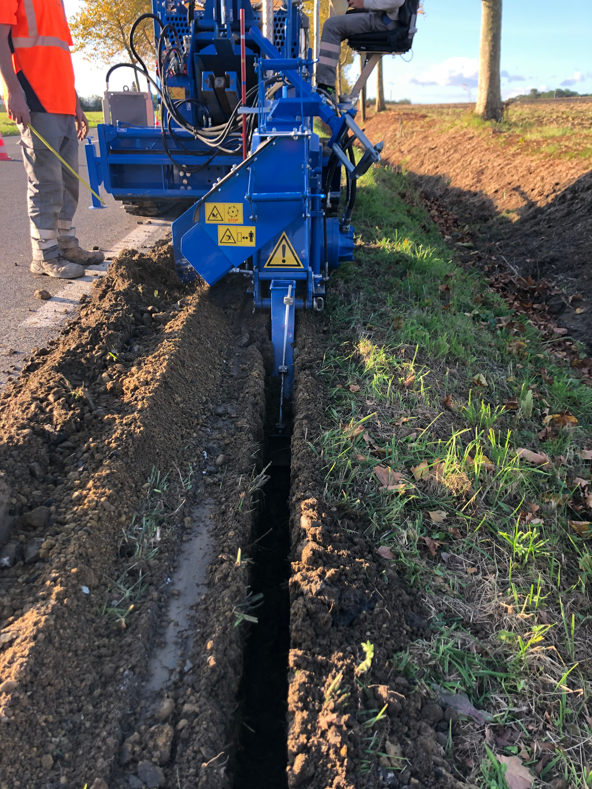 Beim Micro-Trenching werden Gräben gerade so breit und tief gefräst, dass ein zu verlegendes Kabel gut in den Graben eingeführt werden kann. Sowohl der Graben als auch der damit verbundene Aushub werden damit so gering wie möglich gehalten. Möglich machen das besonders schmale Fräsketten, die in der Regel zwischen 5 mm und 8 mm Breite erreichen.