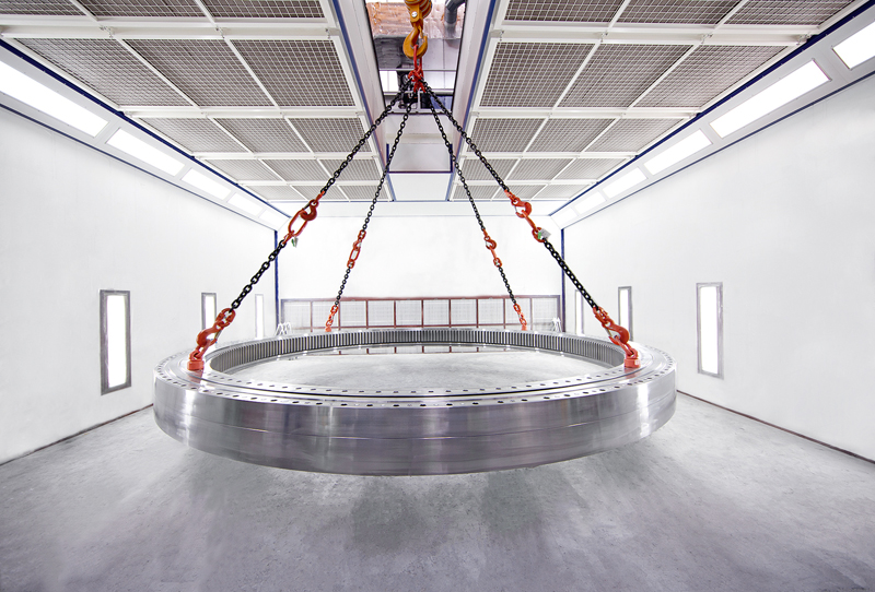 Liebherr hat bereits mehrere Projekte mit STEC realisiert. Neben dem Hauptlager stellt Liebherr auch das Erektorlager für die Tunnelbohrmaschine her. Mit 7,3 m Durchmesser und 5,7 t Gewicht wirkt es zwar im Vergleich nicht ganz so groß, hat aber dennoch eine wichtige Funktion im Tunnelbau. Es sitzt hinter dem Bohrkopf und sorgt dafür, dass während des Tunnelbaus Fertigelemente aus Beton ringsum an die Wand gesetzt werden. Die Betonelemente haben in erster Linie die Aufgabe, den Tunnel abzusichern. Im zweitem Schritt stützt sich die TBM an diesen Betonelementen ab, um Vorschub zu generieren. Der entstehende 8 km lange Tunnel soll mit einer Höhe von 15,5 m in Foshan in Südchina künftig ermöglichen, dass auf zwei übereinanderliegenden Fahrbahnen Fahrzeuge in je drei Spuren hin- und zurückfahren können. t
