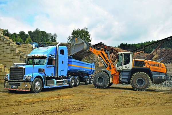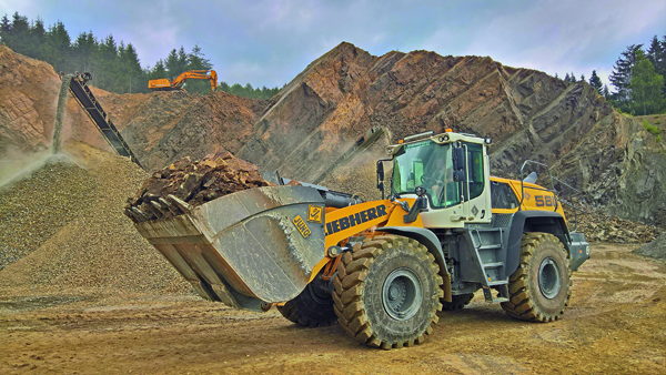 Seit der Inbetriebnahme im Juni 2017 erweist sich der L 580 XPower von Liebherr für die Günter Jung GmbH als eine ideale Maschine für den Load-and-Carry-Einsatz. Die Z-Kinematik bietet hohe Kräfte im unteren Hubgerüstbereich – eine wichtige Eigenschaft, um die gesprengte Grauwacke mit der 6 m³ fassenden Felsschaufel effizient aufzunehmen. Beim Transport des Materials sorgt der leistungsverzweigte Fahrantrieb, der sich automatisch und stufenlos der jeweiligen Fahrsituation anpasst, für ein ruhiges Fahrverhalten und hohe Leistung. »Mit dem neuen Liebherr-Radlader schlagen wir täglich rund 1 500 t Grauwacke um. Dabei benötigen wir durchschnittlich nur circa 12 l Diesel pro Betriebsstunde, was beachtlich wenig ist und unsere Betriebskosten senkt«, erläutert Günter Jung.