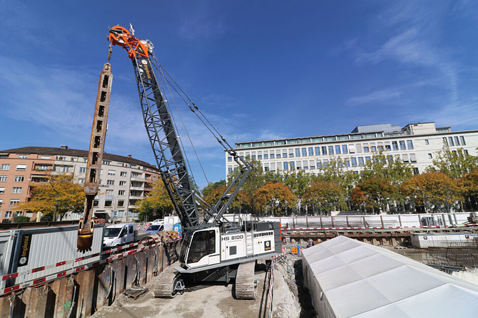 Die zunehmend größer werdenden Schlitzwandbaustellen mit höheren Gewichten von Greifern und Bewehrungskörben stellen immer höhere Anforderungen an die Baumaschinen. Deshalb hat Implenia die bisherigen Seilbagger mit 80 t Traglast durch zwei HS 8100 HD mit 100 t ersetzt. Bei Implenia werden sie hauptsächlich für Schlitzwand- und Bohrpfahlarbeiten, Filterbrunnenbohrungen oder Rütteldruckverfahren eingesetzt. Der neue Zurich-Konzernsitz soll im Jahr 2020 eröffnet werden. Durch die Freilegung der 3 000 bis 5 000 Jahre alten Pfahlbausiedlungen können Verzögerungen jedoch nicht vollständig ausgeschlossen werden. §