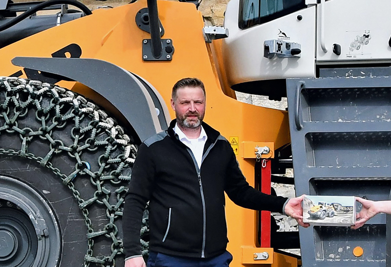 »Der L 586 XPower ist das größte Radlader-Modell von Liebherr und verfügt, wie alle XPower-Radlader, serienmäßig über den robusten und effizienten leistungsverzweigten Fahrantrieb. Wir freuen uns, dass wir seit der ersten Vorführung im Steinbruch im Jahr 2018 nun schon den dritten L 586 XPower an Wilhelm Rinsche und sein Team liefern dürfen«, so Wilfried Holz bei der Maschinenübergabe. Wilfried Holz ist Verkäufer bei Liebherr-Baumaschinen in Dortmund und betreut das Schotterwerk Rinsche. t