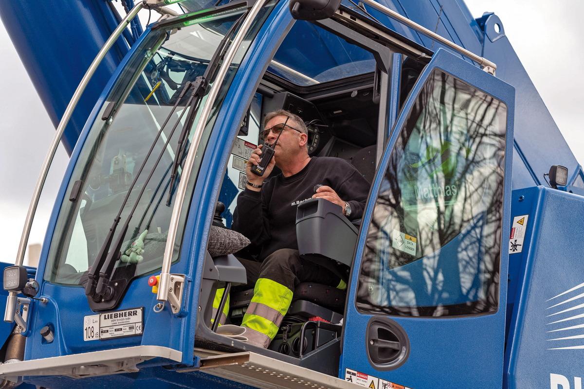 Matthias Bachmann, Kranfahrer auf dem firmenblau lackierten LTR 1220, ist voll des Lobes für seine neue Maschine: »Steuerung, Kamerasystem, Beweglichkeit, Präzision – alles wirklich super«, schwärmt er. Bezüglich der Hubkraft lässt der moderne Kran seinem zufriedenen Bediener ohnehin keine Wünsche offen. »Ein 60 t schwerer Unterzug war bisher das Schwerste, was ich mit dem LTR verfahren habe. Und in den 990 Betriebsstunden hatten wir keinen einzigen Stillstand – das finde ich schon enorm gut.« Montageleiter Boris Cordes hört das gern und ergänzt: »Den LTR 1220 anzuschaffen war die beste Entscheidung, die wir treffen konnten. Das Gerät ist einfach herausragend.« s