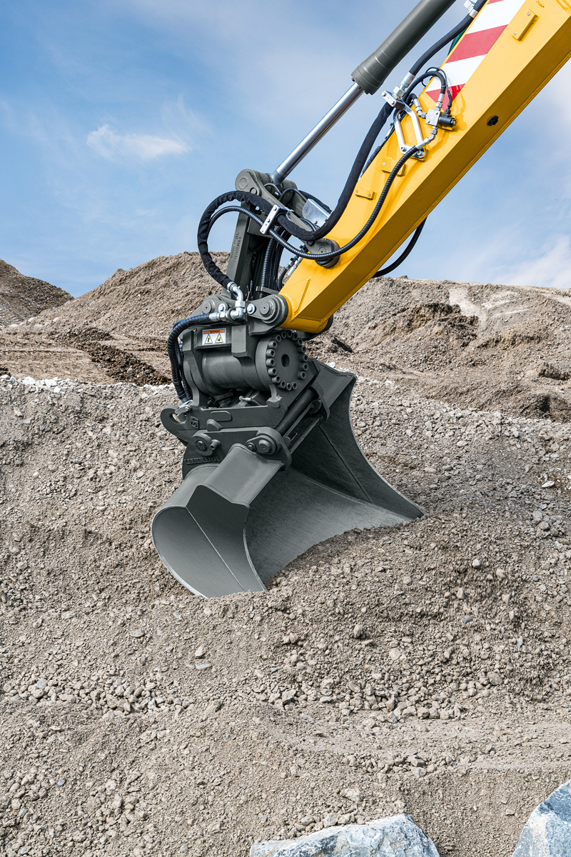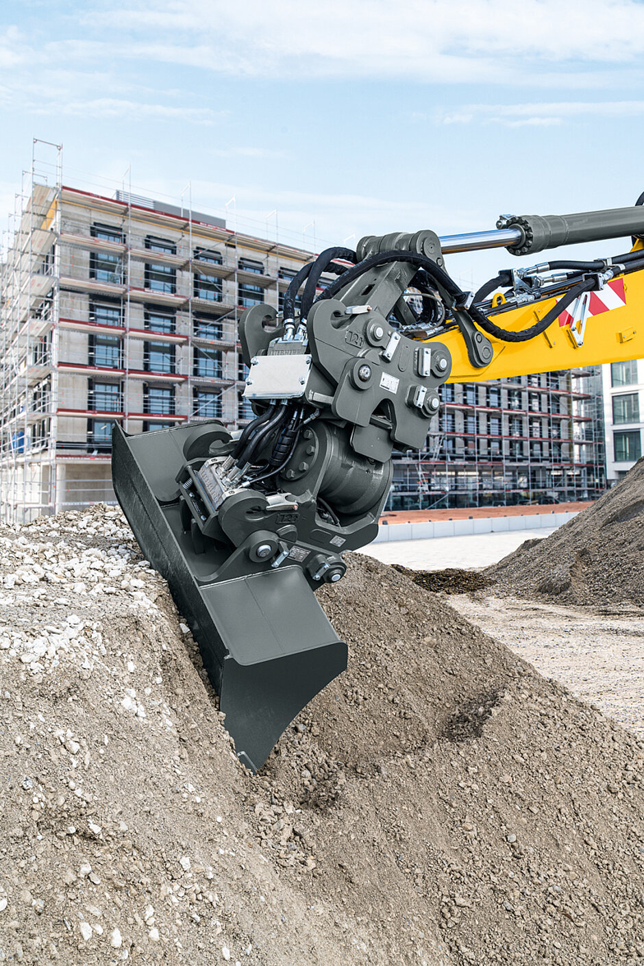 Bei klassischen Erdbewegungsarbeiten, wie beim Aushub oder Transport unterschiedlicher Materialien, werden vorwiegend starre Löffel eingesetzt. Um Erdwälle abziehen und modellieren, bzw. Planier- und Grabenräumarbeiten sowie Abbruch- oder Recycling-Arbeiten durchführen zu können, ist ein gewisser Schwenkwinkel von Vorteil. Mit der neuen LiTiU-Einheit wird jedes starre Anbauwerkzeug zu einer schwenkbaren Einheit, ohne dass ein Anbauwerkzeugwechsel vorgenommen werden muss. Auch bereits hydraulische Anbauwerkzeuge können für einen noch größeren Schwenkwinkel mit der LiTiU-Einheit kombiniert werden, sowie Anbauwerkzeuge anderer Hersteller wie beispielsweise Rüttelplatten oder Mulcher. Die Mobil- und Raupenbagger sind mit dem neuen Liebherr-Anbauwerkzeug noch flexibler einsetzbar. Gleichzeitig wird die Produktivität gesteigert, da mit dem generierten Schwenkwinkel auch schwer zugängliche Stellen bearbeiten werden können, ohne dass eine Neupositionierung der Maschine notwendig ist. t