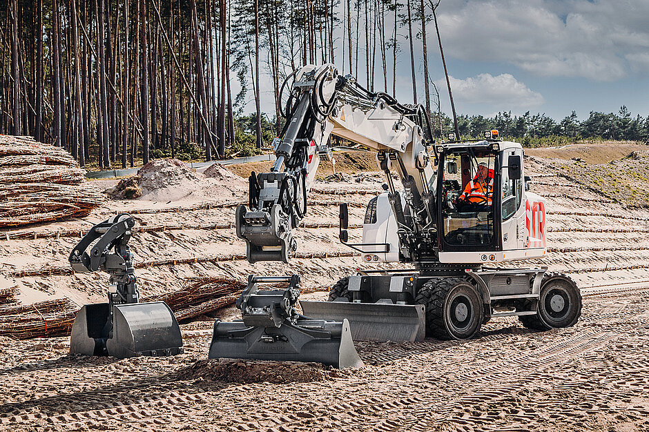 Liebherr bietet bei den Schnellwechselsystemen drei Ausbaustufen an: Neben mechanischen Systemen für seltene Anbauwerkzeugwechsel eignet sich das hydraulische Schnellwechselsystem für häufige Wechselvorgänge. Der Schnellwechsler wird per Knopfdruck bedient, die Hydraulikleitungen müssen aber manuell verbunden und getrennt werden. Mit dem vollhydraulischen System Likufix kann der Werkzeugwechsel komfortabel aus der Kabine erfolgen. Durch die Kombi aus hydraulischem Schnellwechsler und Likufix-Kupplungsblock verschmelzen mechanische und hydraulische Anbauwerkzeuge mit der Maschine zu einer leistungsfähigen Einheit.