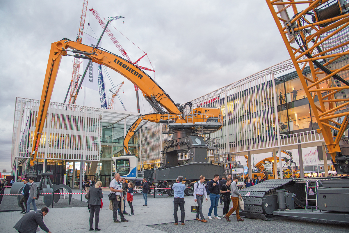 Im Segment der Materialumschlagmaschinen zeigte Liebherr mit dem LH 22 M Industry, der für die Holzwirtschaft konzipiert wurde, sowie dem LH 26 M Industry E und dem LH 150 M Port E, die beide für Einsätze im Recycling-Bereich sowie Hafenumschlag vorgesehen wurden, ein leistungsstarkes Trio. Im mächtigen Design zeigte sich auch die neue Erdbewegungsraupe PR 766 der 8. Generation (bauMAGAZIN 10/22, Seite 202). Mit rund 55 t Einsatzgewicht verfügt dieses Modell laut Liebherr über das für schwere Gewinnungsarbeiten konzipierte »High Drive«-Laufwerk, was die Effizienz und Zuverlässigkeit im Einsatz deutlich steigern soll. Die Raupe der 8. Generation durfte auf der Bauma im Übrigen das erste Mal Frischluft schnuppern und überzeugte dabei gleich mit einem Live-Auftritt.