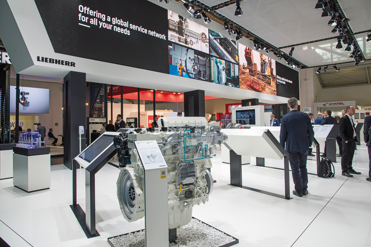Während der H966 im Raupenbagger R 9XX H2, der ersten Maschine von Liebherr mit einem zu 100 % wasserstoffbetriebenen Verbrennungsmotor, seine Leistungsfähigkeit bei den Demo-Shows im Freigelände unter Beweis stellte, wurde der mit DI-Technologie ausgestattete H964 auf dem Stand von Liebherr Components gezeigt. Bei diesem Motor wird der Wasserstoff direkt in den Brennraum eingespritzt, während er bei der PFI-Technologie in den Ansaugtrakt geblasen wird. Die DI bietet ein höheres Potenzial in Bezug auf Verbrennungseffizienz und Leistungsdichte als PFI. Dies macht Wasserstoffmotoren, so Liebherr, zu einer attraktiven Alternative zu Dieselmotoren, wenn es um anspruchsvollere Anwendungen geht.
