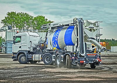 Alle begehbaren Bereiche der Mischanlage bieten ausreichend Platz und vereinfachen die Wartung und Reinigung. Darüber hinaus ist Platz für die Lagerung zusätzlicher Gebinde, beispielsweise für Stahlfaserdosierung, vorgesehen. Auf der Waagenbühne kann ein Kettenzug installiert werden, mit dem über die Materialluken Europaletten mit Lasten bis zu 1 000 kg auf die entsprechende Arbeitsebene gehoben werden können. Auch die Kopffreiheit im gesamten Innenbereich wurde überarbeitet. Alle Treppen und Aufstiege sind serienmäßig 1 m breit. Die überarbeitete Mischerhochdruckreinigung »LiClean« ermöglicht zusammen mit dem Reinigungsbetrieb im »Schleichgang« ein optimales Reinigungsergebnis bei hoher Sicherheit. Weiterhin steht optional ein automatisches Reinigungssystem für den Fahrmischereinlauftrichter zur Verfügung. t