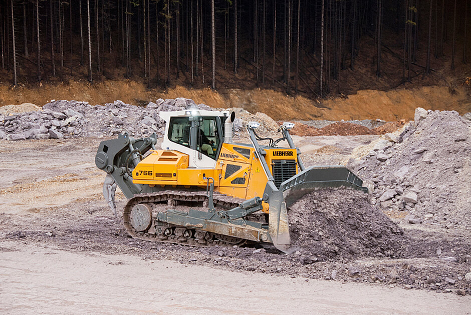 Durch den hydrostatischen Antrieb der PR 766 kann die Dieselmotor-Drehzahl unabhängig von der geforderten Last im praktischen Einsatz konstant gehalten werden, so Liebherr. Das Aggregat laufe somit stets mit wirtschaftlich optimaler Drehzahl. »Die Vermeidung von Drehzahlschwankungen unterscheidet den Liebherr-Fahrantrieb von allen anderen derzeit am Markt verfügbaren Antriebskonzepten von Großplanierraupen«, so Martin Längle. »Wesentliche Komponenten des Antriebsstrangs sind hausintern entwickelt und optimal aufeinander abgestimmt. So wird die Effizienz des Gesamtsystems optimiert.«