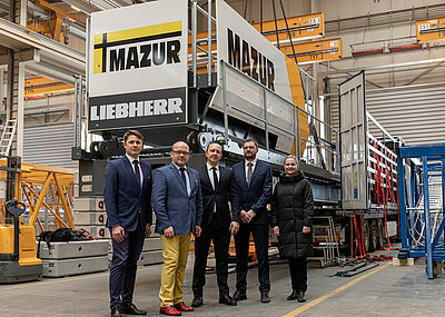 Der Liebherr-Turmdrehkran 125 EC-B 6 wird von der Hüffermann Krandienst GmbH mit Sitz in Wildeshausen bei Bremen gestellt. Der Komplettanbieter im Bereich der Kran- und Schwerlastlogistik setzt bei diesem Einsatz auf die Expertise der Liebherr Tower Crane Solutions. Die Projektabteilung für Sondereinsätze war von Anfang an beratend bei der Erstellung der Krankonsole am Vorschub dabei. Auftraggeber für den Flat-Top-Kran ist der führende Schweizer Baudienstleister Implenia.