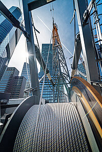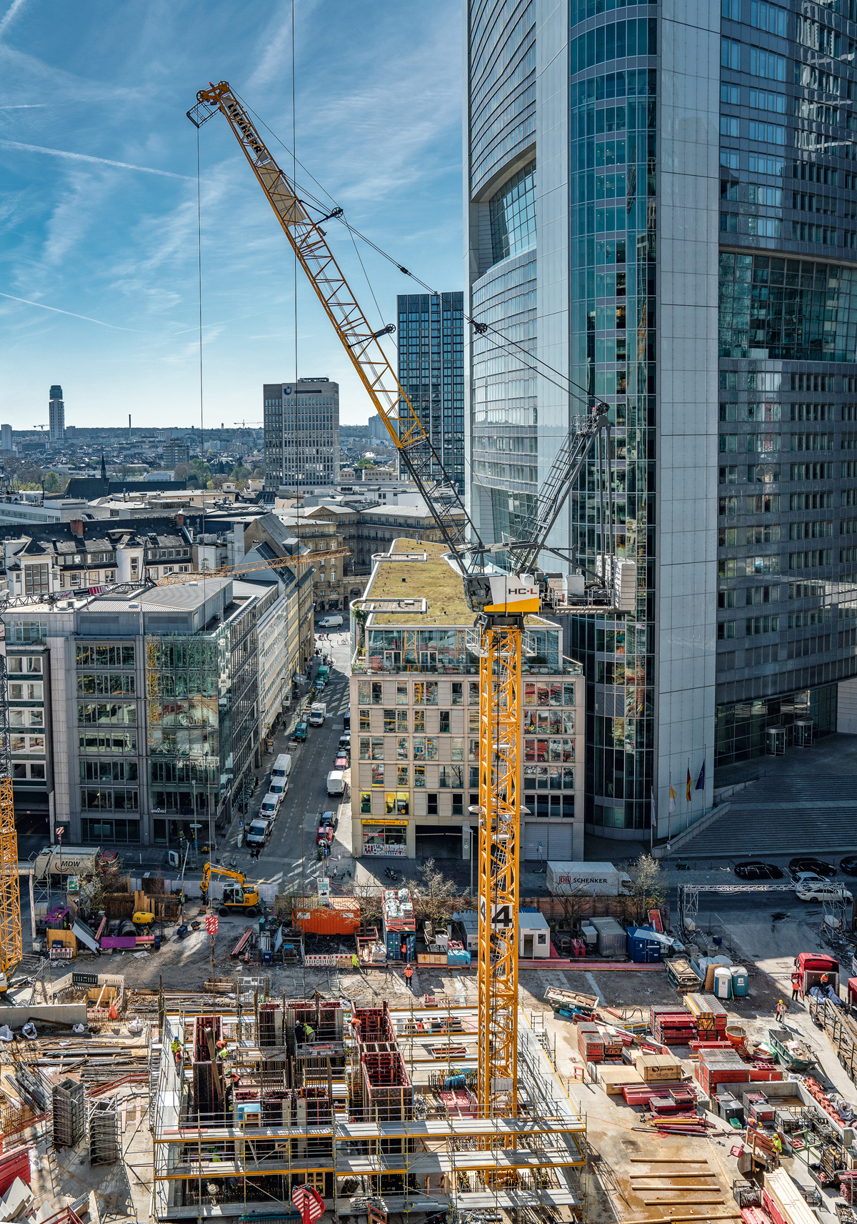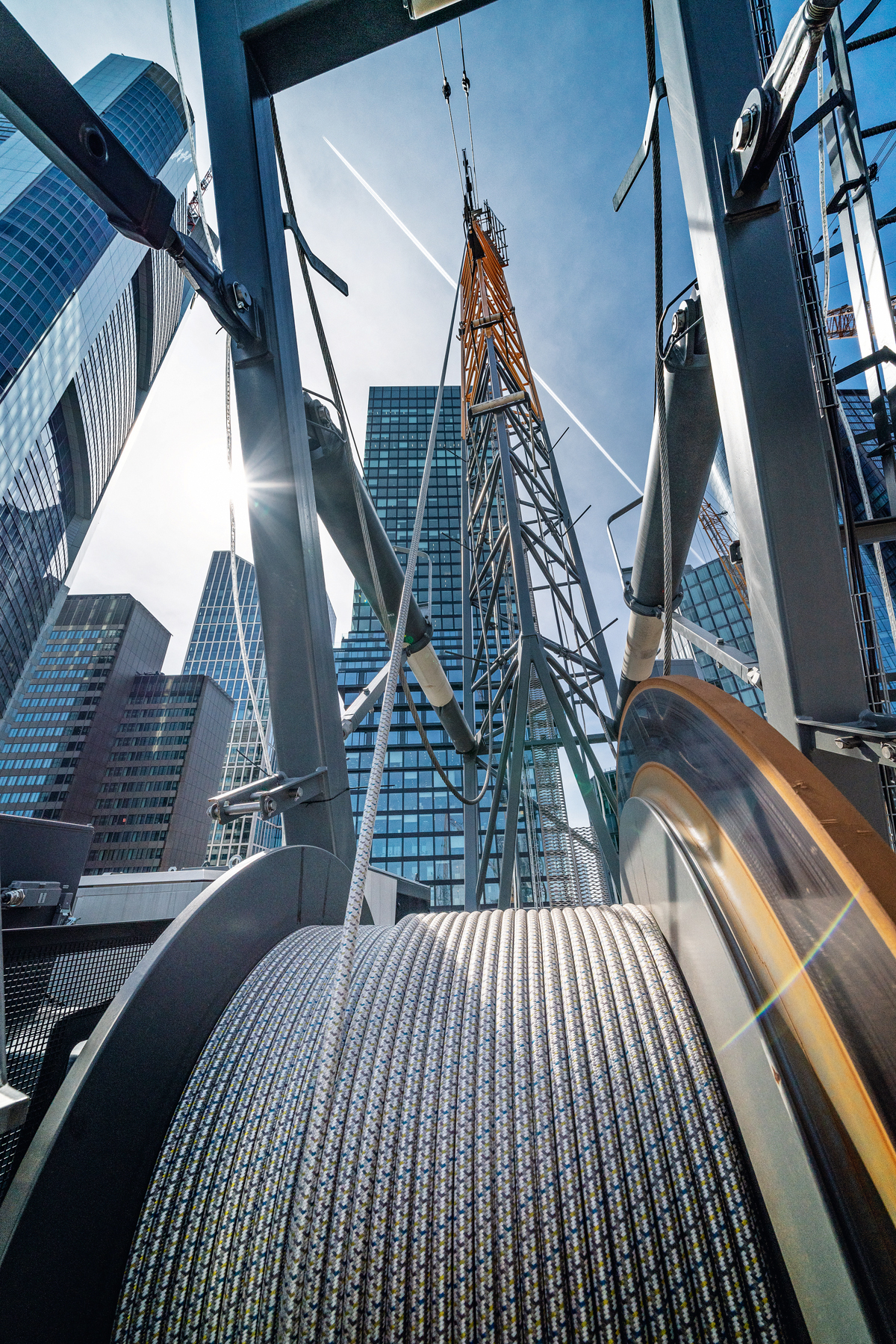 Herausforderungen wie enorme Hakenhöhen, wenig Platz und kein Überdrehen von Nachbargrundstücken stehen für den Bau hoher Gebäude in dicht bebauten Stadtzentren. Für solche Projekte will der neue 258 HC-L 10/18 Fibre mit dem 25-mm-Faserseil von Liebherr ein passender Partner sein. Es handelt sich um den ersten Verstellauslegerkran von Liebherr mit hochfestem Faserseil.