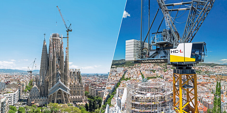 So wird der Liebherr-Verstellauslegerkran 710 HC-L 32-64 Litronic bei der Fertigstellung des Turms Jesus Christus, des Hauptturms des Sühnetempels der Sagrada Familia, zum Einsatz kommen. Er wird nach Vollendung eine Höhe von 172 m erreichen. Dafür benötigte die Sagrada Familia einen Kran mit hoher Tragfähigkeit. Der 710 HC-L kann maximal 64 t heben und erreicht mit seiner Ausladung, in diesem Fall 55 m, die höchsten Bereiche der Basilika. Der 125 HC-L wird in der Mariä-Himmelfahrt-Kapelle und in den angrenzenden Kreuzgängen eingesetzt werden.