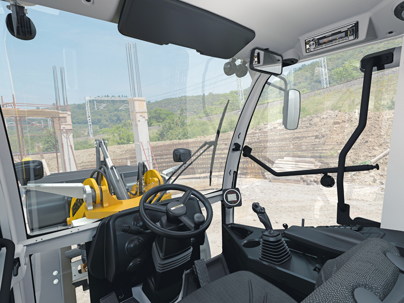 Details, etwa übersichtlich angeordnete Bedienelemente oder praktische Ablageflächen, sollen den Komfort in der Fahrerkabine erhöhen. Mit dem bekannten Liebherr-Bedienhebel kann der Maschinenführer das Hubgerüst und das Anbauwerkzeug sicher bedienen. Das gilt auch für den optionalen Mini-Joystick am Bedienhebel, der dem Betrieb hydraulischer Zusatzfunktionen dient. Die Lenksäule ist auf Wunsch stufenlos verstellbar und das Display lässt sich individuell auf der A-Säule der Fahrerkabine positionieren.