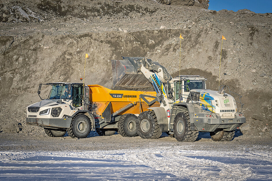 Etwa 100 km nördlich des Polarkreises ist das auf Erdbewegungs- und Bauarbeiten spezialisierte schwedische Familienunternehmen GE Maskintjänst aktiv. Die Arbeitsbereiche decken mechanische und maschinenbauliche Werkstätten, in denen Konstruktion, Fertigung, Reparatur und Wartung erfolgen, über Maschinenbau und Bohrungen bis hin zum Betrieb von Windkraftanlagen und dem Verkauf elektrischer Energie ab. Bei Dammarbeiten werden unterschiedliche Erdbewegungsmaschinen von Liebherr, darunter Radlader, Raupenbagger und Planierraupen, eingesetzt.