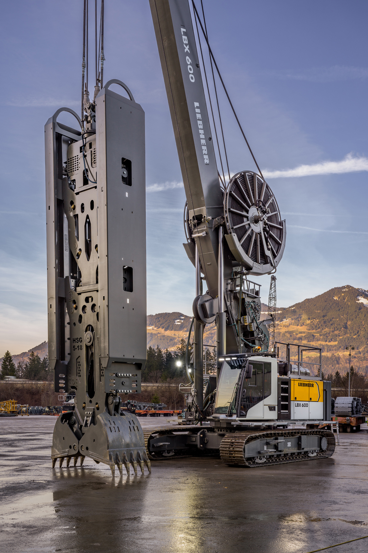 Das Trägergerät ist nicht nur für Arbeiten mit hydraulischem Greifer konzipiert, sondern auch – durch die zwei Freifallwinden mit einer Ziehkraft von je 300 kN – mit mechanischem Greifer sowie Meißel. In Kombination mit dem hydraulischen Schlitzwandgreifer HSG 5-18 bietet das LBX 600 eine intuitive Bedienung, die auch hydraulische Korrekturen der Greiferausrichtung und dadurch eine höhere Vertikalität des Schlitzes ermöglicht.