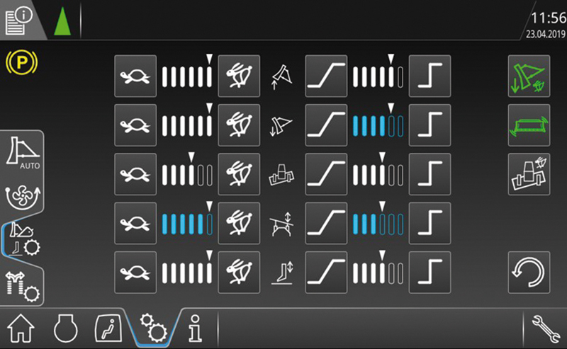 Elektronisch vorgesteuert lässt sich das Ansprechverhalten sowie die Geschwindigkeit von Front- und Heckausrüstung flexibel auf die Einsatzverhältnisse und die Bedürfnisse des Fahrers in den Modellen PR 716 G8 bis PR 756 G8 abstimmen. Die intelligente Arbeitshydraulik bietet zudem Assistenzfunktionen wie Schildentleerung mittels Rüttelfunktion, Heckaufreißerparkposition sowie automatische Schildanhebung bei Rückwärtsfahrt und ermöglicht die Integration von 2D- und 3D-Maschinensteuerungen.