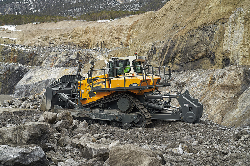 Mit den Erfahrungswerten des Liebherr-Raupenspektrums und dem positiven Feedback zur PR 776 wurde das Laufwerkskonzept der Mining-Raupen für die neue PR 766 G8 übernommen – mit Delta-Laufwerk sowie Doppel- und Leitradpendel.