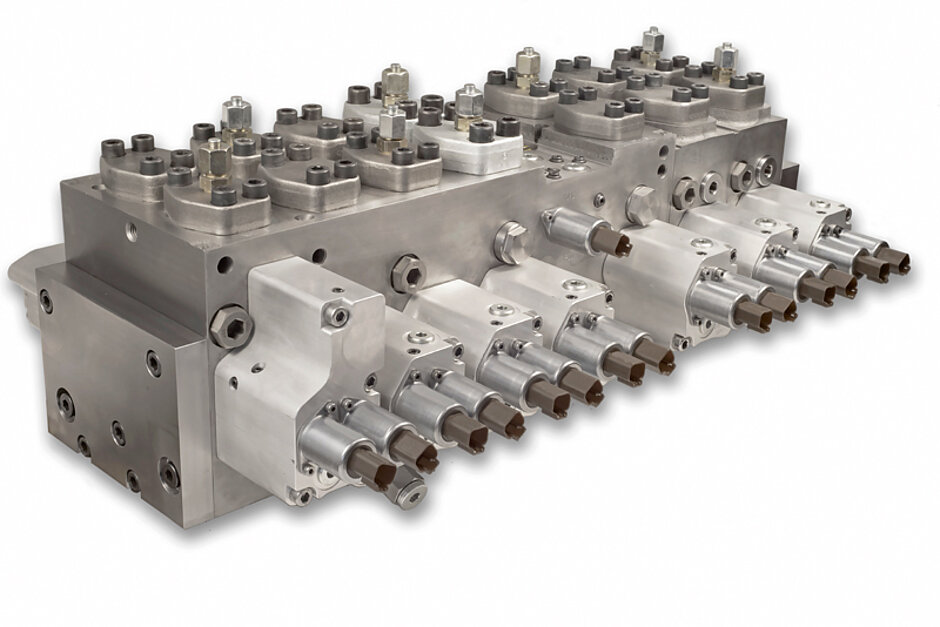 Die dritte Generation der Ventiltechnik ist aufgrund des kompakten Monoblocks mit fünf Sektionen eine Ergänzung zur zweiten Generation (drei Sektionen) und zudem auf Mobilbagger abgestimmt. Das Steuerventil ist erhältlich in der Nenngröße 18 mit einem maximalen Volumenstrom von 250 l/min und in Größe 22 mit einem Volumenstrom von bis zu 350 l/min. t