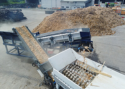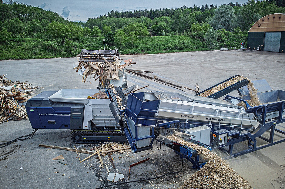 Im Bereich der Altholzaufbereitung verspricht der zusätzliche Einsatz des ebenso elektrisch betriebenen Sternsiebs Zeta Star 4000 E stets optimale Korngrößen. Das so gewonnene definierte Korn verbessere, so Lindner, die Vermarktung und die Vergütung des Output-Materials und trage wesentlich zur Gewinnoptimierung bei.