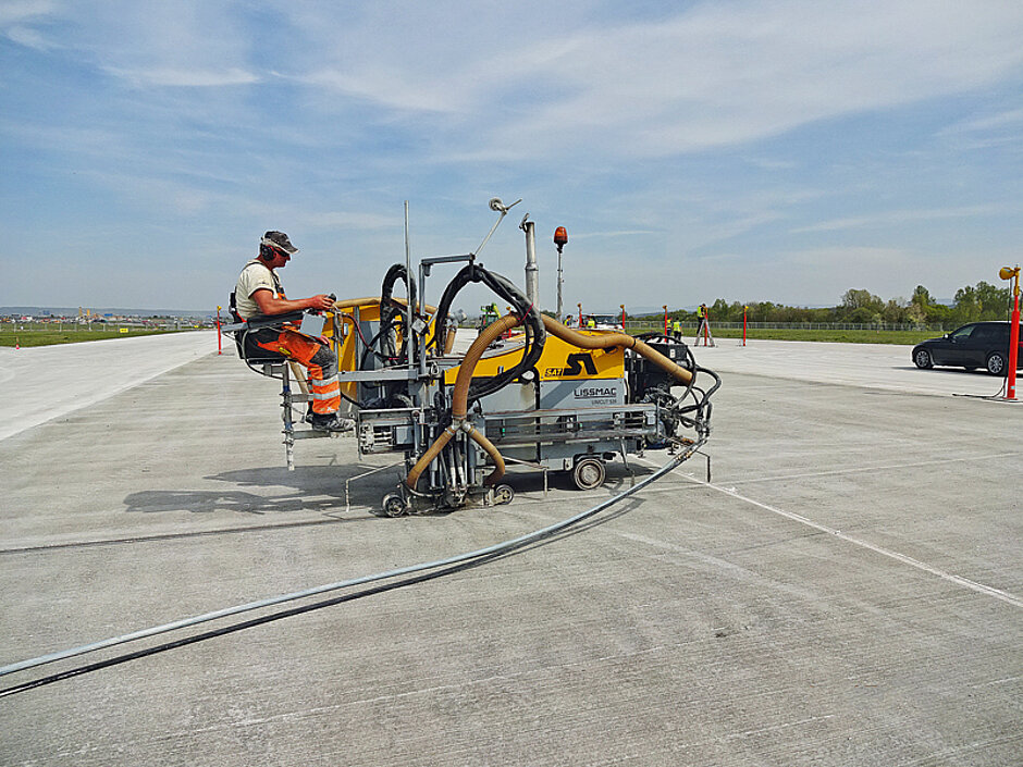 20 000 m an gezielt gesetzten Trennschnitten umfasste das betonknackende Fugennetz, das die Profis von SAT Spezialbau in vier Wochen in die ausgediente Piste des Flughafens frästen. Bis zu 40 cm tief reichten die Schnitte durch Beton und Eisen. Unerlässliche Vorarbeiten, um 1 200 m Rollbahn in 28 000 m³ Schutt zu verwandeln – mehr als 1 000 Lkw-Fuhren. Für derart hohe Dauerbelastungen beim Fugenschneiden konzipiert ist der Lissmac UC 520, den SAT Spezialbau im Doppelpack einsetzte. Kraft und Ausdauer liefert dem Fugenschneider ein 4-Zylinder-Dieselmotor von Deutz mit 74,4 kW (101 PS). Bis zu 1 500 mm darf der Sägeblattdurchmesser betragen. Die maximale Schnitttiefe liegt bei 630 mm. Neben der Kraft wusste der UC 520 mit Ergonomie und Vielseitigkeit zu überzeugen. Das intuitive Bedienkonzept mit multifunktionalem Joystick und Zentral-Display hat Lissmac zusammen mit langjährigen Anwendern entwickelt. Der UC 520 beherrscht den Schiebe- wie auch den Schleppschnitt. Zudem lässt sich die Maschine schnell von Links- auf Rechtsschnitt umbauen.