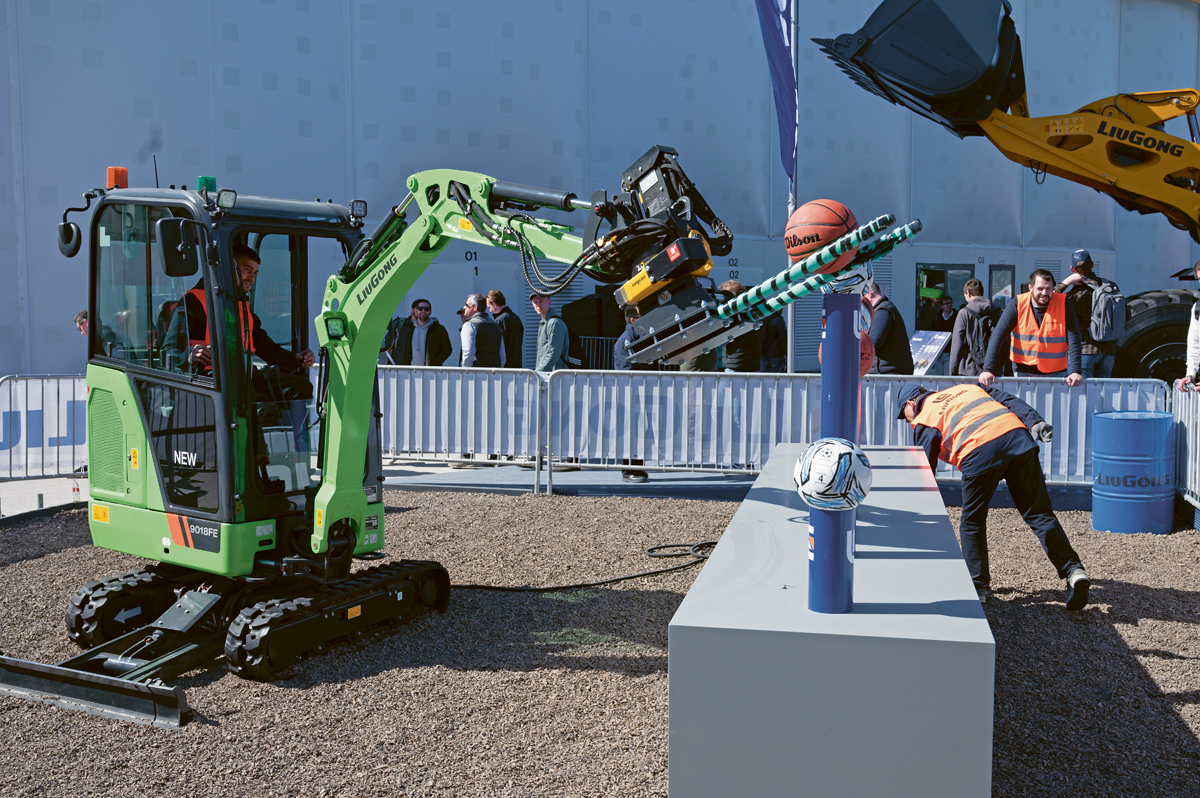 Ebenfalls ein Highlight: Der »9018FE« – er ist ein kompakter Elektro-Minibagger, der für Abbrucharbeiten im Innenbereich und für Einsätze in urbaner Umgebung entwickelt wurde und die Kohlenstoffemissionen und die Lärmbelastung reduziert. Trotz seiner kompakten Größe ist er mit einer leistungsstarken Lithium-Eisenphosphat-Batterie ausgestattet, die bis zu 4,5 h Betriebszeit im Normalbetrieb ermöglicht und ihn zu einem unverzichtbaren Werkzeug für emissionsarme Baustellen macht. »LiuGongs Führungsrolle bei BEVs bezieht sich nicht nur auf Maschinen – es geht um Gesamtlösungen«, so Mellor weiter. »Deshalb bieten wir jetzt über unser Händlernetz ein komplettes Angebot an Ladeinfrastruktur von 30 kW bis 360 kW an, um unsere Kunden bei der Umstellung auf elektrische Energie zu unterstützen.«