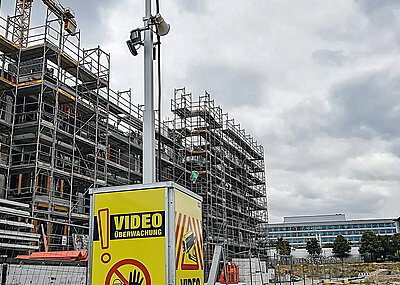 »Mit dem Kameraturmsystem wollten wir neben kriminellen Machenschaften auch das generelle Betreten des Areals durch Unbefugte vermeiden. Denn auf Baustellen ist immer von einer gewissen Verletzungsgefahr auszugehen«, erklärt Kloster. Deshalb wurde das gesamte, 10 000 m² große Gelände durch einen 2 m hohen Zaun eingegrenzt und zur effizienten Sicherung zusätzlich mit Video Guard Professional bewacht. »Um die Fläche lückenlos zu überblicken, suchten wir gemeinsam mit den Sicherheitsexperten von Maibach Velen den optimalen Stellplatz für das System«, so der Bauleiter. Dank der drei verwendeten Ultra-Lowlight-Kameras reichte – trotz vieler verwinkelter Ecken – bereits ein Turm aus. Dieser wurde immer dann eingeschaltet, wenn alle Mitarbeiter das Gelände verlassen hatten.