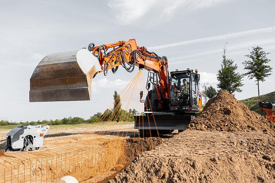 Ein gutes Beispiel für die Digitalisierung der Baustelle ist das neu konzipierte System »AutoDoku« – mittels Sensor-, Cloud- und Kameratechnik wird ein gewöhnlicher Bagger zum 3D-Scanner. Zum Hintergrund: Statt langwieriger und kostspieliger Vermessungsarbeiten erfolgen Vermessung und Dokumentation im Kanal- und Rohrleitungsbau künftig direkt von der Baumaschine aus. Genutzt wird hierfür eine Kombination aus Sensoren, einem LiDAR Laserscanner und Kameras aus dem Hause Sodex. Die verschiedenen Komponenten scannen den Arbeitsbereich der Maschine, während GPS-Sensoren die zentimetergenaue Positionierung ermöglichen. Alle eintrudelnden Informationsdaten zu den vorhandenen Leitungen, etwa Länge, Tiefe oder Lage, werden in einer »Punktwolke« verarbeitet. Alle 1 cm bis 2 cm entsteht ein Messpunkt, woraus mittels 3D-Daten und Bildern eine ausführliche Baudokumentation entsteht, die der Anwender dann über die Cloud abrufen kann. Auf diese Weise lassen sich Distanzen, aber auch Volumen direkt aus der Punktwolke ermitteln. Das heißt, hat der Baggerfahrer beispielsweise eine ausgehobene Grube vor sich, kann ihm das System berechnen, wie viel Füllmaterial er benötigt. Grundsätzlich sorgt »AutoDoku« dafür, dass zusätzliche Vermessungsarbeit egalisiert ist – denn das geschieht künftig vollautomatisch vom Bagger aus, ohne dass der Maschinist einen zusätzlichen Finger dafür krumm machen muss.