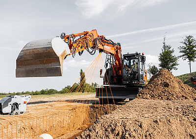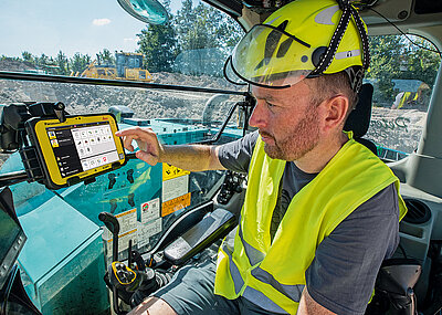 Ob Wald oder Feld, ob Berg oder Fluss, auf seinen hydraulisch verstellbaren Füßen gelangt der S12 überall hin. Und weiß dank der einfachen Synchronisierung zwischen Büro und Bagger über die Cloud stets genau, was er zu tun hat. »Die Cloud-Lösung spart uns viel Zeit und Wege. Die Daten sind da, wo man sie braucht, und wir können auf ein kostenintensives ›Turnschuhnetzwerk‹ verzichten«, erklärt Fallert. t