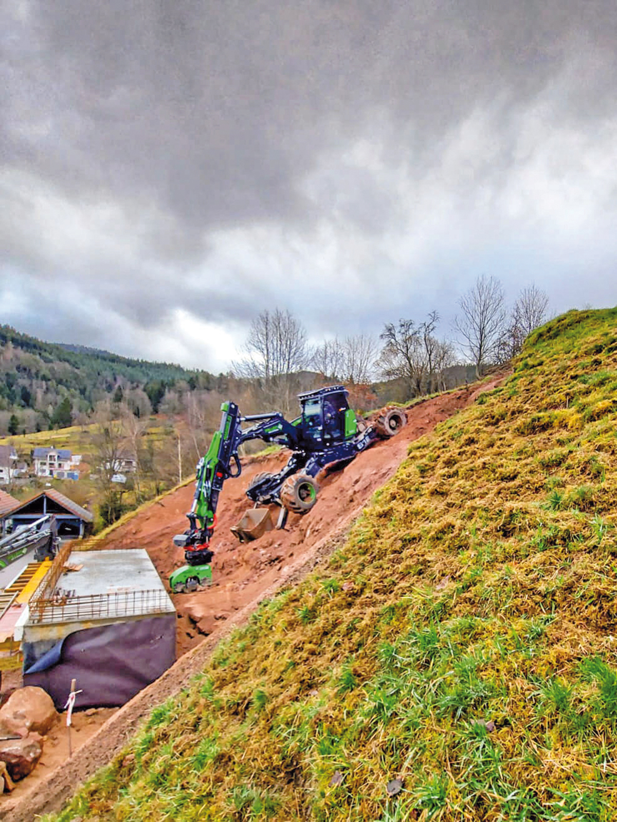 Das Familienunternehmen leistet seit 1995 umweltschonende Erdarbeiten und ist zudem als Meisterbetrieb im Straßenbau qualifiziert. Schreitbagger gehören seit 2007 dazu: »In Deutschland sind die eher ungewöhnlich, aber in der Schweiz und in Österreich sieht man diesen Maschinentyp oft«, erläutert Fallert die Technik, die sich auch für den Schwarzwald anbietet.