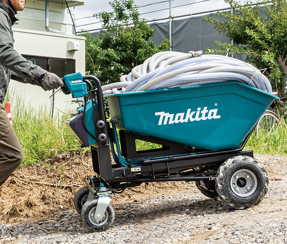 Weitere Produktneuheiten, die auch auf dem Messestand zu finden sind, sind die beiden 2 x 18 V Akku-Schubkarren DCU601 und DCU602 aus dem LXT Akku-System. Damit lassen sich bis zu 0,3 t schwere Lasten dank elektrischem Antrieb transportieren, was die körperliche Belastung beim Transport von schweren Gegenständen für den Anwender deutlich reduziert.