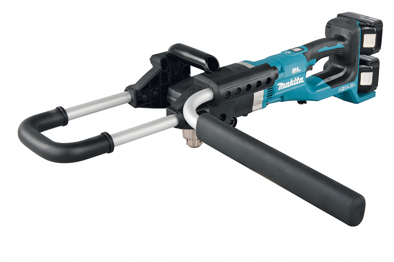 Der 2 x 18-V-Akku-Erdbohrer DDG460 bringt ein Drehmoment bis 136 Nm auf. Die »Automatic Torque Drive«-Technologie reguliert automatisch die Drehzahl, um den optimalen Antrieb zu gewährleisten. Ein blockierender Bohrer kann durch den Rückwärtslauf gelöst werden. Makita bietet Erdbohrer mit 100 mm, 150 mm und 200 mm Durchmesser sowie einer Länge von 800 mm an, eine Verlängerung mit 500 mm, sowie Adapter für die gängigsten Bohrer anderer Anbieter. t