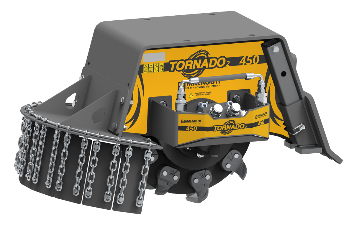 Eine der Hauptstärken des Malaguti Tornado-Schneidwerks ist daher seine Anpassungsfähigkeit an verschiedene Bagger- und Frontladermodelle, vom 1,5-t-Minibagger bis hin zu 18,0-t-Maschinen. Dank der Verfügbarkeit verschiedener Anbaugeräte (Schnellkupplungen, Aufsteckbolzen usw.) ist die Montage einfach und kann vollständig in das Hydrauliksystem des Fahrzeugs integriert werden.