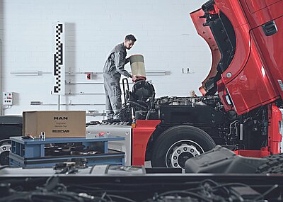 Jens Schulze, verantwortlich für die technische Lagerung und Logistik bei der Bayerischen Zugspitzbahn, äußert sich über den neuesten Fuhrparkzugang am Betriebswerk in Grainau: »Entscheidend für die Anschaffung dieses MAN TGE 4x4 war die enorme Antriebskraft des Allrads im steilen Gelände. Es ist schon beeindruckend, wie das intelligente Allradsystem arbeitet und den Transporter auch auf unbefestigten Wegen wie eine Gams den Berg hinaufzieht.«