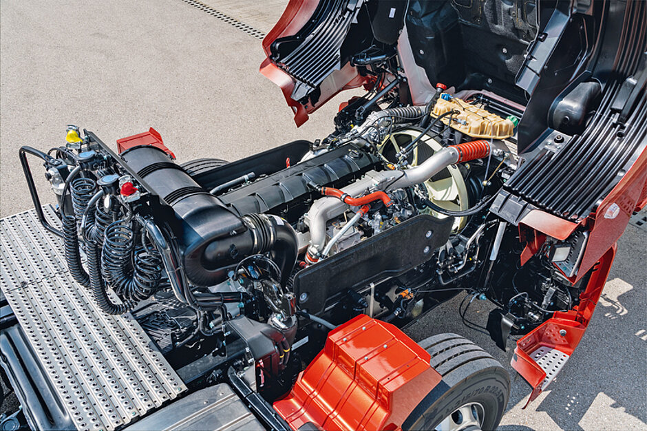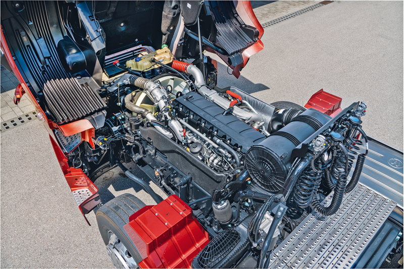 Auch eine überarbeitete Version des Top-Sellers MAN D26 ist an den Start gegangen. Der 12,4 l große Sechszylinder fährt künftig mit neuen Leistungsklassen von 430 PS, 470 PS und 510 PS vor. Das Drehmoment steigt jeweils um 100 Nm auf entsprechend 2 200 Nm, 2 400 Nm und 2 600 Nm und steht bereits ab 930 min¯¹ bis 1 350 min¯¹ zur Verfügung. Wesentlich für die Charakteristik des neuen D26 ist der einstufige Turbolader. Wie beim D15 hält auch beim D26 ein verbessertes Thermo-Management Einzug. Für mehr Fahrkomfort ist der neue D26 zudem mit einer neuen Kupplung ausgestattet.