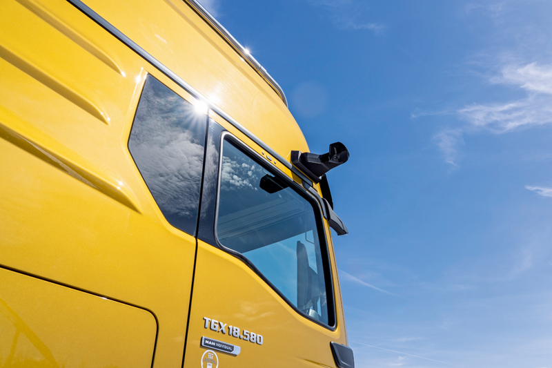 Beim Thema »Effizienz« legt die laut Hersteller mit bis zu 8,2 % Einsparung genügsame neue Truck-Generation noch einmal nach. Weiter verbrauchsmindernd wirken die ebenfalls bestellbare neue dynamische Drehmomentanpassung und die Drehzahlabsenkung bei Rollen mit Leerlaufdrehzahl. In Kombination mit dem Getriebe »MAN TipMatic 12«, das nun auch bei Standardsattelzugmaschinen serienmäßig zum Einsatz kommt, und der durch den Wegfall der Außenspiegel und die neue Sonnenblende für GM- und GX-Fahrerhaus weiter verbesserten Aerodynamik sollen im Fernverkehr mit D26-Motorisierung nochmals bis zu 3,7 % Kraftstoffeinsparung möglich werden.