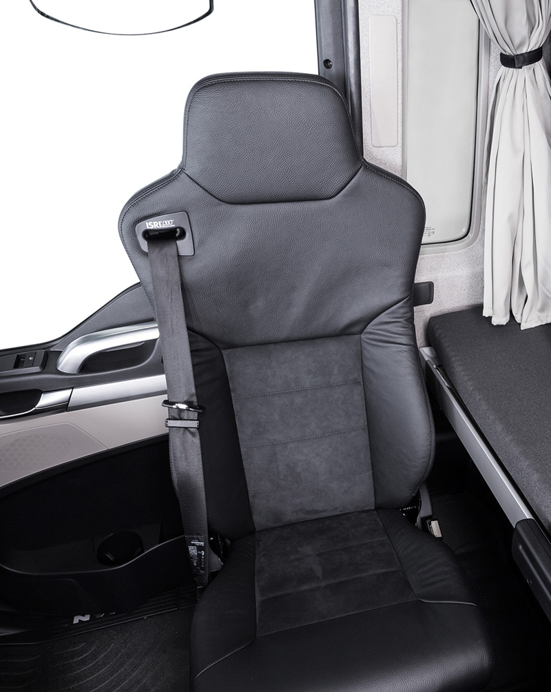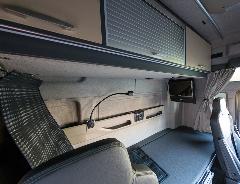 Unterwegs zuhause sein. Diese Vorgabe setzt MAN mit dem neugestalteten Interieur des MAN TGX erfolgreich um, fahrerfreundlich und einsatzoptimiert, für einen professionellen Job hinter dem Steuer. Bereits die Grundausstattung überzeugt mit einem klimatisierten Fahrersitz in Echtleder/Alcantara. Das MAN Media Paket Professional, in das ein leistungsstarkes Navigations- sowie ein Soundsystem bereits integriert sind, bietet effektive Tourenplanung und beste Unterhaltung während der Fahrt. Praktischer Stauraum findet sich unter anderem in der vollständig versenkbaren Kühl-/Ablagebox. Für Top-Schlafkomfort sorgen die Schlafliege in Luxusausführung mit 7-Zonen-Matratze und Lattenrost sowie die Standheizung mit 3,5 kW.