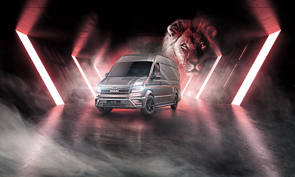 Ein exklusives und sportliches Design soll die kürzlich von MAN vorgestellte und im polnischen Sady gefertigte Highend-Ausstattungslinie des MAN TGE charakterisieren. Zu den Ausstattungsmerkmalen zählen u. a. Design-Elemente wie schwarze Felgen, rote Bremssattel, Edelstahlblenden und Ledersitze mit gesticktem MAN-Löwen. Die MAN-eigene Fahrzeugveredelung setzt bei der Neuheit auf dezent sportliche Design-Elemente. Der TGE »Individual Lion S« ist das erste Ergebnis des neuen und im Vorjahr eröffneten polnischen Produktionsstandorts von MAN Individual in Sady bei Posen. Dort stehen rund 3 300 m2 Hallen- sowie rund 10 000 m2 Außenfläche zur Verfügung. In Sady arbeiten rund 40 Mitarbeiter an Ausstattungen und Ausführungen des TGE, die nicht im 50 km entfernten Werk Września vom Band laufen. Dabei handelt es sich beispielsweise um Umbauten für den Passagiertransport. Der TGE-Kombi entsteht in Sady sowie alle weiteren Kundensonderwünsche rund um den 9-Sitzer (8+1) wie Luftfederung, Tische, Beleuchtung oder Klimatisierung. Einen weiterer Schwerpunkt bilden Auf- und Anbauten zur Erweiterung des Einsatzzweckes, wie Laderampe, Signallichtanlage oder Drei-Seiten-Kipper. Auch Radstandveränderungen kommen zum Leistungsumfang hinzu – und der neue »Individual Lion S«. Frederic Jakowatz, der bei MAN Truck & Bus den Bereich MAN Individual leitet, rechnete noch im Dezember für das vergangene Jahr mit rund 150 in Sady modifizierten TGE. »Unser Ziel für das Jahr 2022 sind 1 200 modifizierte Transporter.« Den Namenszusatz »Individual Lion S« hat sich der TGE vom größeren Bruder TGX entliehen. MAN Truck & Bus hatte bereits im Vorjahr den TGX »Individual Lion S« vorgestellt als exklusives Top-Modell der neuen MAN-Truck-Generation. t
