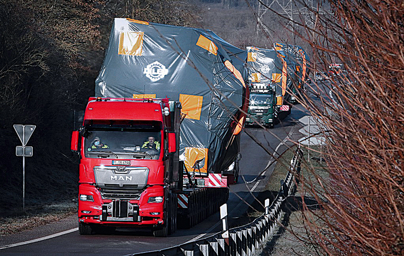 In einem aus drei Einheiten bestehenden Schwerlastkonvoi kam Mitte Januar eine vierachsige Schwerlastsattelzugmaschine der neuen MAN-Truck-Generation zu ihrem Premiereneinsatz. »Als Teil der ›MAN Trucknology Roadshow‹ stellt das Fahrzeug die erste Schwerlastzugmaschine aus der neuen TG-Generation dar«, sagt Michael Makowsky, MAN-Schwerlastexperte und zuständig für die »Trucknology Roadshow«.