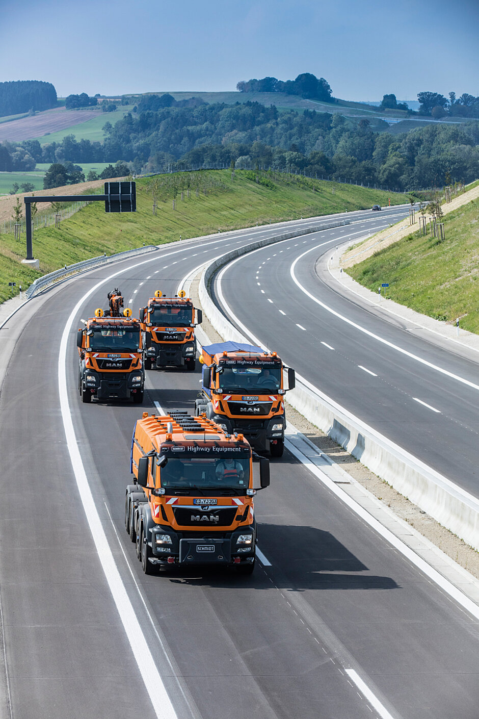 Zum Fahrzeugpark der A 94 Isentalautobahn Services gehören fünf MAN TGS, drei Dreiachser und zwei baugleiche Vierachser, die mit ihren Aufbauten von Aebi Schmidt als Generalauftragnehmer in Abstimmung mit MAN Truck & Bus Deutschland beschafft wurden.