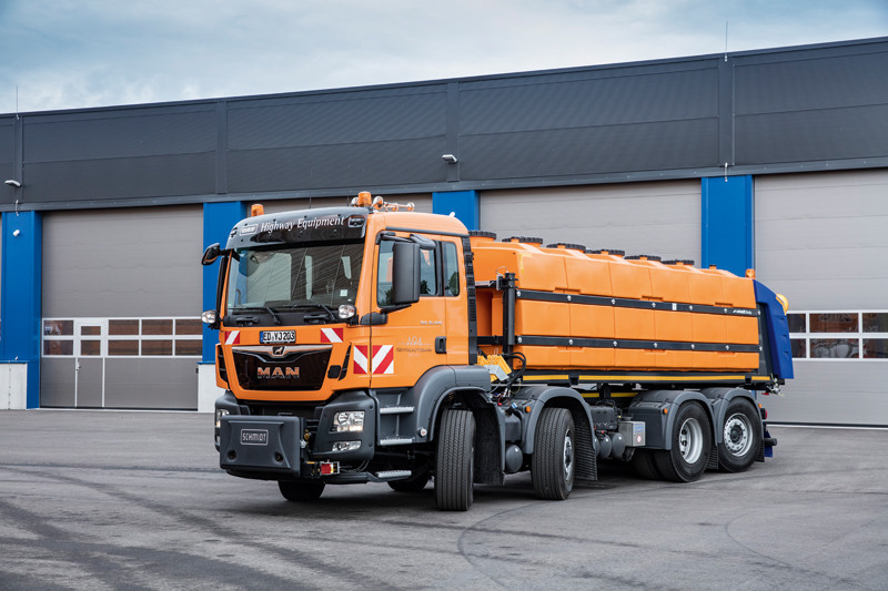 Alle Fahrzeuge erhielten für den Winterdienst werksseitig von MAN neben gelben Rundumleuchten, Arbeitsscheinwerfern und Drucklufthörnern am Fahrerhausdach der M-Kabine, die Frontanbauplatte zur Montage des Schneepflugs und die hochgesetzte Winterdienstbeleuchtung. Zudem stattete Aebi Schmidt alle Fahrzeuge mit einer angepassten Load-Sensing-Hydraulikanlage zum Betrieb aller Anbaugeräte für den Sommer- und Winterbetrieb aus. Gemeinsames Merkmal der Fahrzeuge ist die Luftfederung an der Hinterachse. Ihr Vorteil zeigt sich im Winterdienst beim Abstreuen der Fahrbahn. Im Lauf der Tour verringert sich die Lademenge an Streugut und Sole, was sich bei einer Blattfederung über die Entlastung der Federblätter auf die Neigung der Ladefläche und somit auf den Winkel des darauf befestigten Streusystems auswirkt. Die Zielsetzung eines einheitlichen Streubildes über die gesamte Tour ließe sich nicht ohne aufwendige Maßnahmen am Streuer umsetzen. Die von MAN hier verbaute elektronisch gesteuerte Luftfederung hat den Vorteil, die Ladeflächenhöhe und ihre Neigung stetig konstant zu halten.