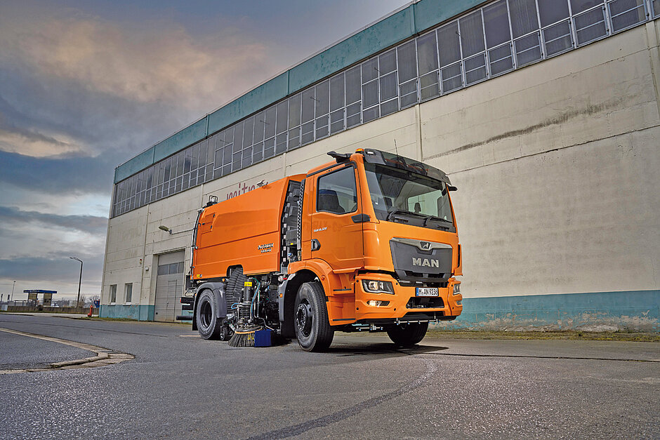 Um die Kehrmaschine in Einsatz zu bringen, gibt es drei Antriebskonzepte, die mit MAN-Fahrzeugen realisierbar sind: