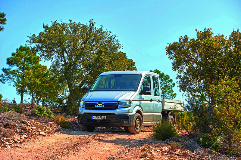 Das Fahrgestell, das auf ein Gewicht von etwa 8,95 t kommt, erfüllt die Zulassungskriterien für ein Geländefahrzeug der Kategorie N3G in normalhoher Bauart und der Bereifung 315/80 R22,5 auch mit diesen Hypoidachsen. Für den Fahrer und den Unternehmer ist von Bedeutung, dass MAN dieses Gewicht ohne Abstriche an Ausstattung und Komfort im Fahrerhaus erreicht.