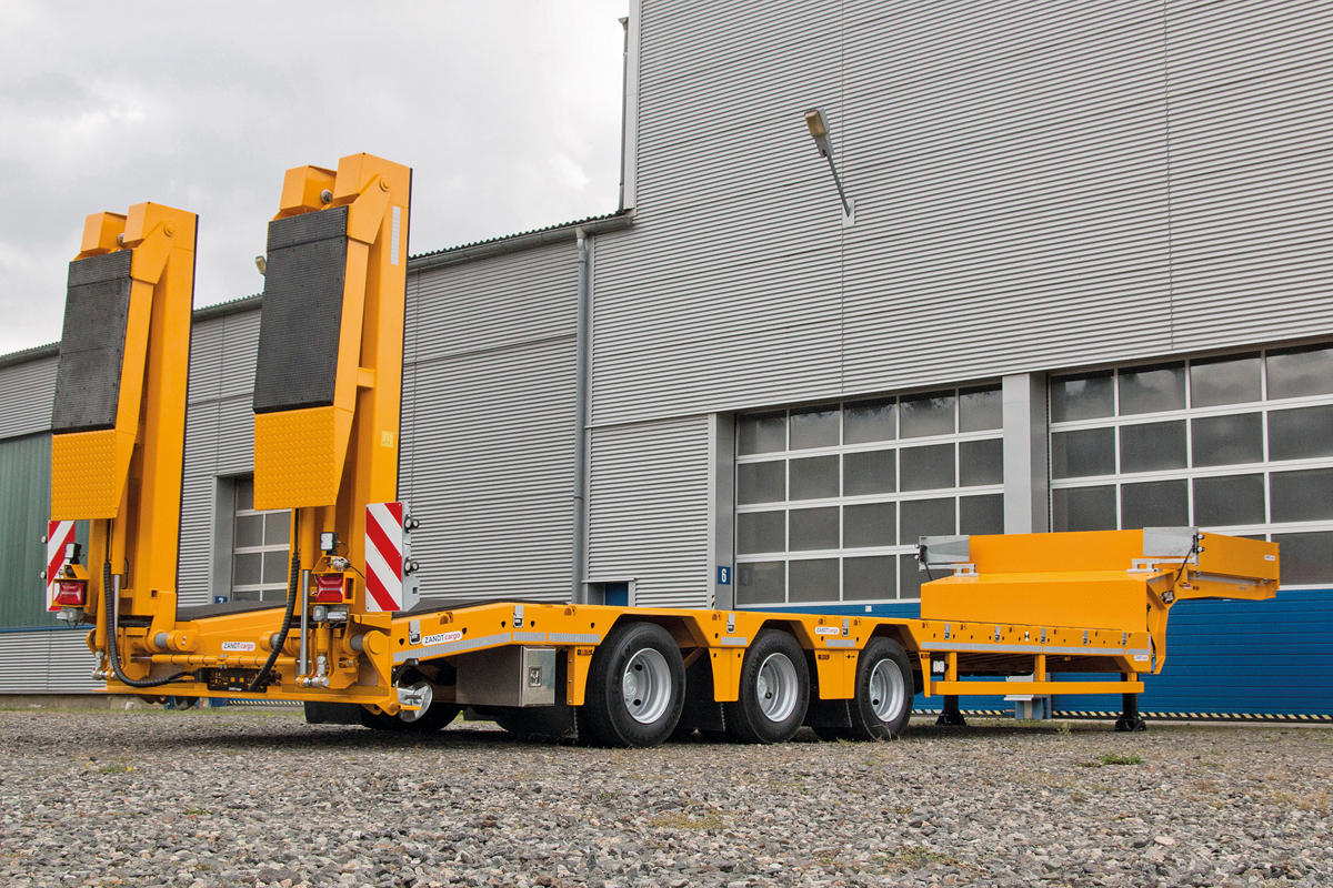 Ideale Partner für schwere Baumaschinenlogistik sind die Zandt cargo Anhängertieflader AT in der Bauausführung als Hochbett über den Drehschemel und als durchgängiges Plateau. Hier punktet die Baureihe AT durch das Zusammenspiel von Rampen, Baggermulden, elektronischen Bremssystemen mit Achslastwaagen in den Transportaufgaben. Zusammen mit den gummierten Ladeflächen an Rampen und Tiefbett als auch den vielfältigen Anschlagpunkten für Ladung wird der sehr hohe Sicherheitsaspekt deutlich.